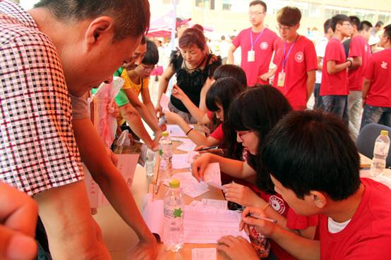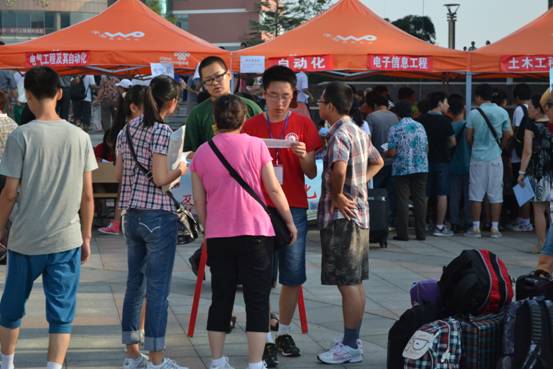 高效快捷、热情周到的服务为新生及家长做好了全方位引导。在威海码头、威海火车站(汽车站)和荣成汽车站,学院设立接待处,安排专车迎接新生及家长直接到校;在报到处,为新生发放入学指南,热情解答新生及家长提出的疑问,并安排志愿者引导新生办理入学手续;设置“绿色通道”,帮助家庭经济困难学生顺利入学,让他们深刻感受到了学校大家庭的温暖和关爱;在校园内,各学生组织及社团设立宣传服务台,向新生及家长展示充满活力的校园文化,并提供免费饮水处、休息区;在学生宿舍区,设置了家长免费宿舍,为远道而来的家长们提供了便捷服务。