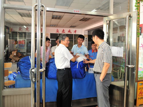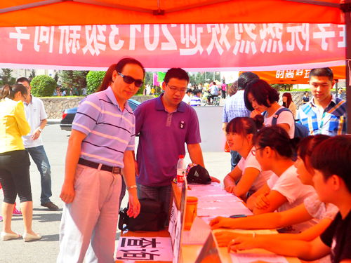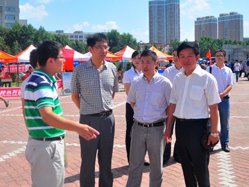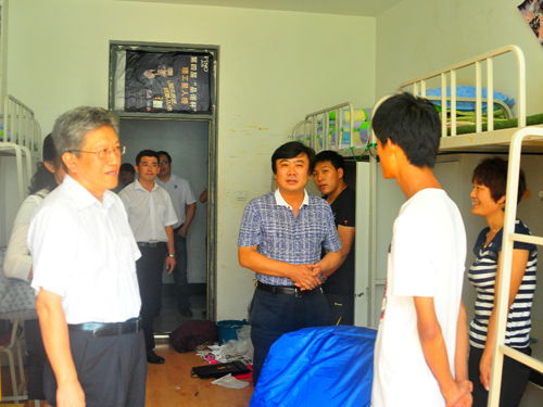 在各区迎新现场,学校党委书记赵国刚、校长李大勇、副校长武俊峰、孟上九、郭二军、校长助理孟庄等学校领导亲临报到现场检查迎新工作,给广大新生和家长带来学校的亲切关怀。学校领导来到新生接待处现场指导工作,查看新生报到流程,详细询问了新生报到的相关情况后,对2013级新生报到提出了具体要求,并到各区寝室与新生及其家长亲切交流,认真听取新生和新生家长对学校工作的建议。慰问各部门迎新工作人员,对工作人员的工作给予了充分肯定,并希望大家坚守岗位,努力工作,保证每名新生都能及时、顺利地报到入学。