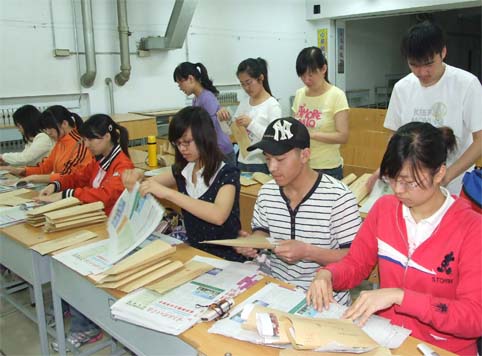 图三:将2008年校报(招生专刊)装入信封邮寄给校友、用人单位和学生家长